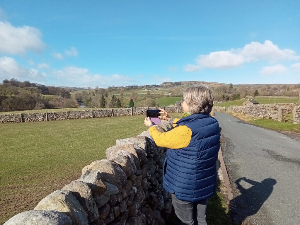 A lovely morning in the Dales with my great friend Lucia Smith. We had a “hobble” round Hebden village and a really good brunch at the Old School Tearoom in a heated gazebo! Lucia is an artist and was taking photos for her paintings as we looked over the River Wharfe and Burnsall village from the Scuff Road. If you wonder what the reef knolls are, in prehistoric times the limestone country north of Skipton was a tropical sea, and the reef knolls were formed by coral deposits on the sea bed. I love the fact that Elbolton means “fairy hill”: our ancestors may not have known exactly what the reef knolls were but they knew they were special and different!