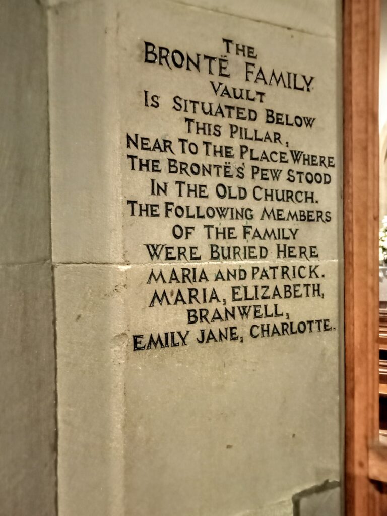 Well worth a visit while you’re in Haworth, although apart from the lower part of the tower, it is not the original one where the Brontës worshipped. The Revd John Wade, who followed Patrick Brontë as incumbent, took advantage of an offer of funding and had the rest of the church rebuilt. However you can see memorials to the family inside the church and the tablet detailing where the family vault is.